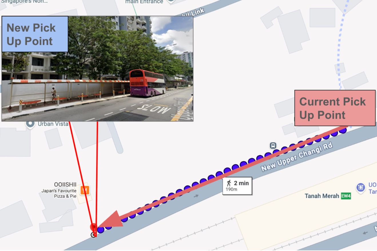 Refer to the below diagram for the new Tanah Merah pick up point.